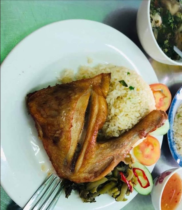 Không gian quán tuy đơn giản, bình dân nhưng luôn giữ được sự sạch sẽ và thoải mái – đúng kiểu quán ăn Việt gần gũi. Phần cơm gà xối mỡ ở đây luôn chiếm spotlight: gà được chiên đến độ da vàng giòn óng ánh, thịt mềm nhưng không khô, ăn kèm với cơm nóng dẻo, rau tươi và nước chấm đậm đà tạo nên một tổng thể hài hòa, vừa miệng. Nhiều thực khách còn đánh giá rằng đây là một trong những địa chỉ cơm gà ngon trong danh sách các quán cơm gà nổi tiếng ở Cần Thơ.