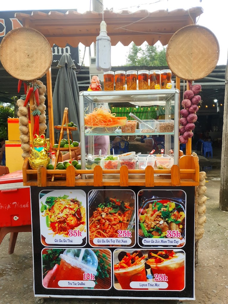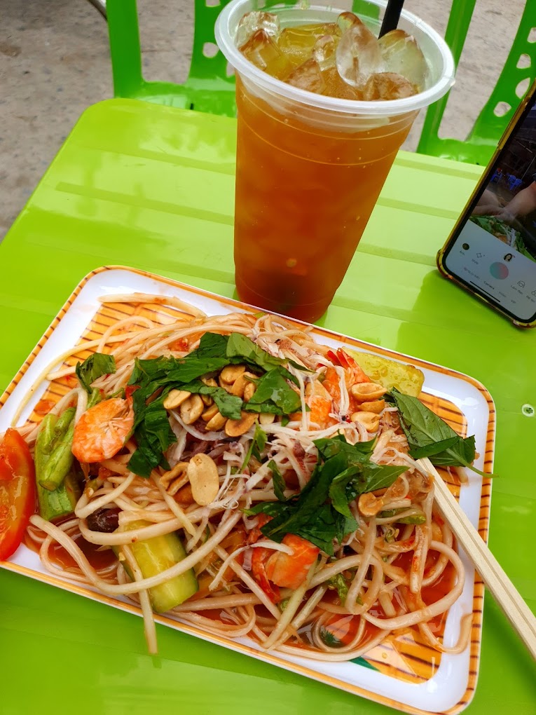 Tín đồ ăn vặt đặc biệt là có khẩu vị chua chua một chút thì gỏi Thái Chúm là quán số 1. Giỏ đu đủ Thái của quán Chúm được thực hiện đúng theo chuẩn Thái. Nước sốt đậm đà khó cưỡng lại được. Các món ăn kèm gỏi không chỉ ngon mà rất đa dạng. Thực khách thoải mái chọn lựa: tai heo, tôm, ba khía, ghẹ,…Đu đủ được sơ chế kỹ càng nhưng vẫn gữi được độ giòn từng sợi.