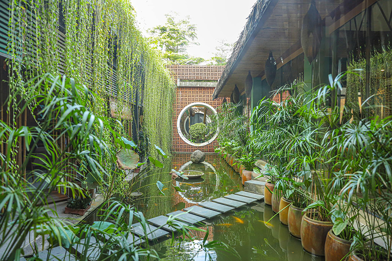 Tiệm có không gian thiết kế đơn giản nhưng ấm cúng, gần gũi thiên nhiên. Bạn có thể lựa chọn ngồi trong nhà với không gian trang nhã hoặc tận hưởng không gian ngoài trời trong khu vườn xanh mát. Bầu không khí yên tĩnh và thoải mái của tiệm trà sẽ giúp bạn thư giãn và tận hưởng từng giọt trà thơm ngon.