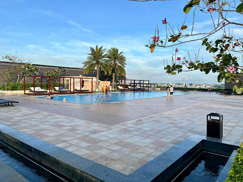 Sân thượng Vincom được thiết kế với kiến trúc hiện đại và sang trọng. Có hồ bơi và mặt tiền được trang trí tinh tế, tạo nên một không gian đẹp mắt và thu hút sự chú ý của mọi người.