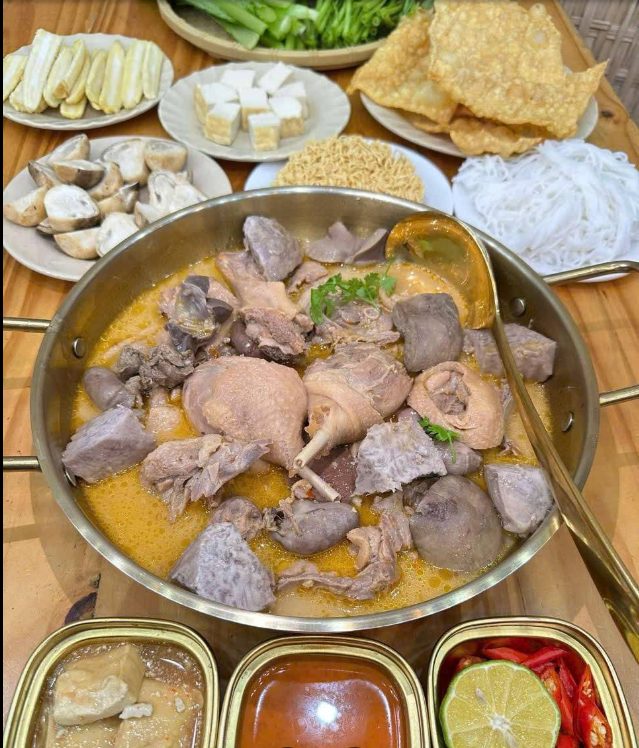 Món lẩu vịt tại đây có nước dùng béo nhẹ, thơm mùi chao, kết hợp cùng thịt vịt mềm và khoai môn bùi. Rau ăn kèm đa dạng giúp món ăn không bị ngấy. Hương vị lẩu giữ được sự cân bằng, dễ ăn và phù hợp với nhiều khẩu vị.