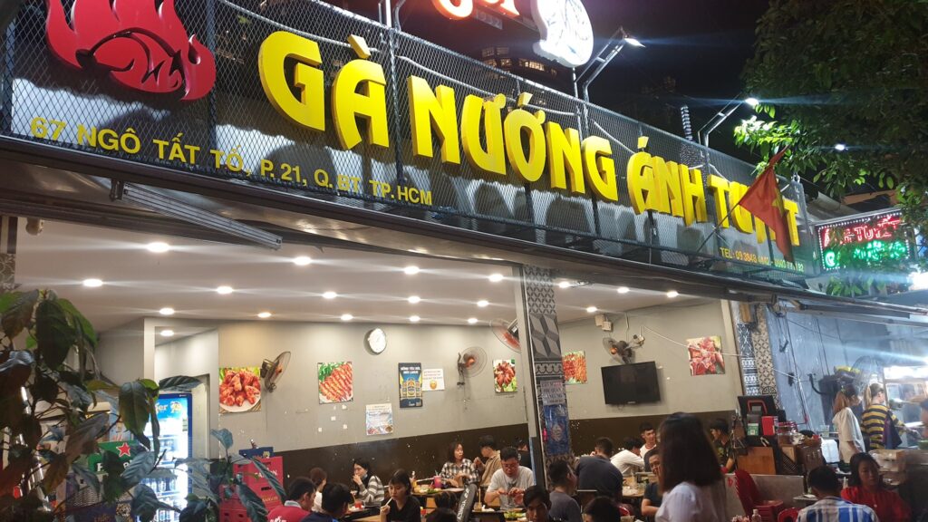 Quán gà nướng muối ớt ngon nhất Sài Gòn này có không gian khá rộng rãi, thoáng đãng. Quán thuộc dạng quán nhậu bình dân với nhiều bàn ghế kê dọc vỉa hè. Đây là địa điểm lý tưởng để cùng bạn bè thư giãn và thưởng thức các món ngon.
