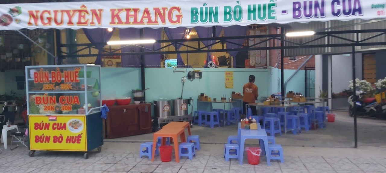 Quán Nguyên Khang – bún bò Huế, bún cua có hương vị đậm chất Huế, nước dùng thanh ngọt, không quá béo, thịt và chả thì đầy ắp trong tô, đảm bảo bạn ăn no từ sáng đến chiều. Đây là địa chỉ ăn sáng quen thuộc với nhiều thực khách. Bên cạnh đó, phần nước dùng khá thanh, thơm nồng nàn mùi sả và ớt tạo nên dư vị rất riêng, động mãi nơi đầu lưỡi. Chính nước dùng đậm đà, mang chất riêng hòa quyện cùng những món topping hấp dẫn, thấm vị giúp món bún bò tại quán gây ấn tượng với nhiều tiệp khách. Điểm nhấn của quán là sự tỉ mỉ trong chuẩn bị các thành phần và công việc nấu nước dùng kéo dài hàng giờ để mang lại hương vị tuyệt vời cho món ăn.